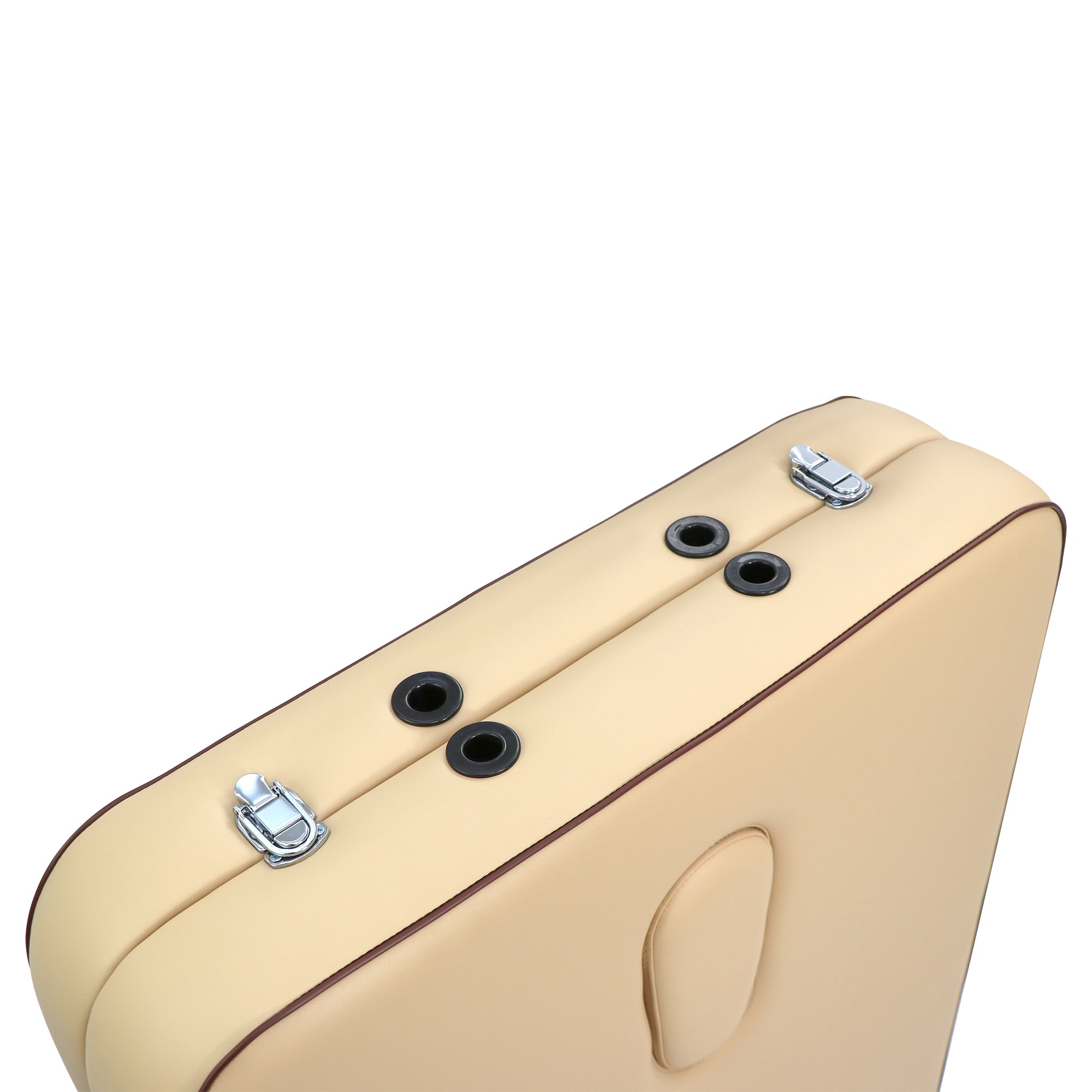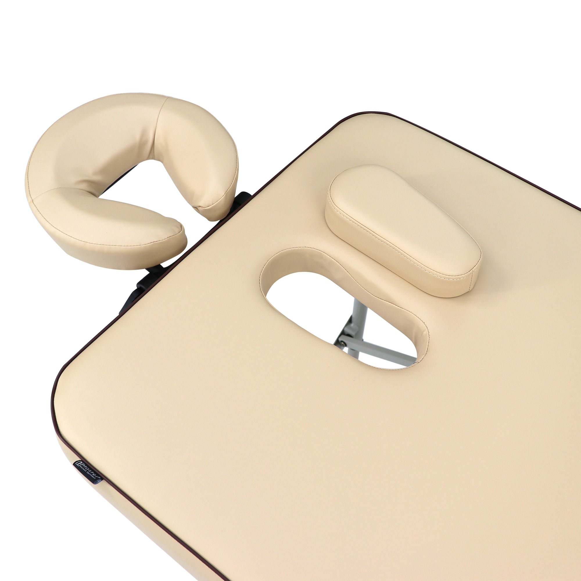 For anyone looking for an ultralight, portable massage table with classic design, Master Massage Breeze is a great choice. While the aircraft-quality aluminum frame ensures the table itself weighs only 26.2 lbs. And folds compactly to be transported and stored, the Breeze can still support a working weight of 650lbs. The 2" Thick cushion of ultra soft foam is covered with a Cream PU upholstery, which is oil- and water-resistant, and backed by extra durability. Exclusive Duo-Plane hinges reinforce the strength for the center of the table, ensuring the durability for years. Properly Shaped Face Port (with plug) preferred by many professionals for comfort or for use in smaller room settings. Accessories include: adjustable face cradle, face comfort pillow, plug for the face port, contoured armrest shelf, comfort half round bolster and a deluxe carrying case.