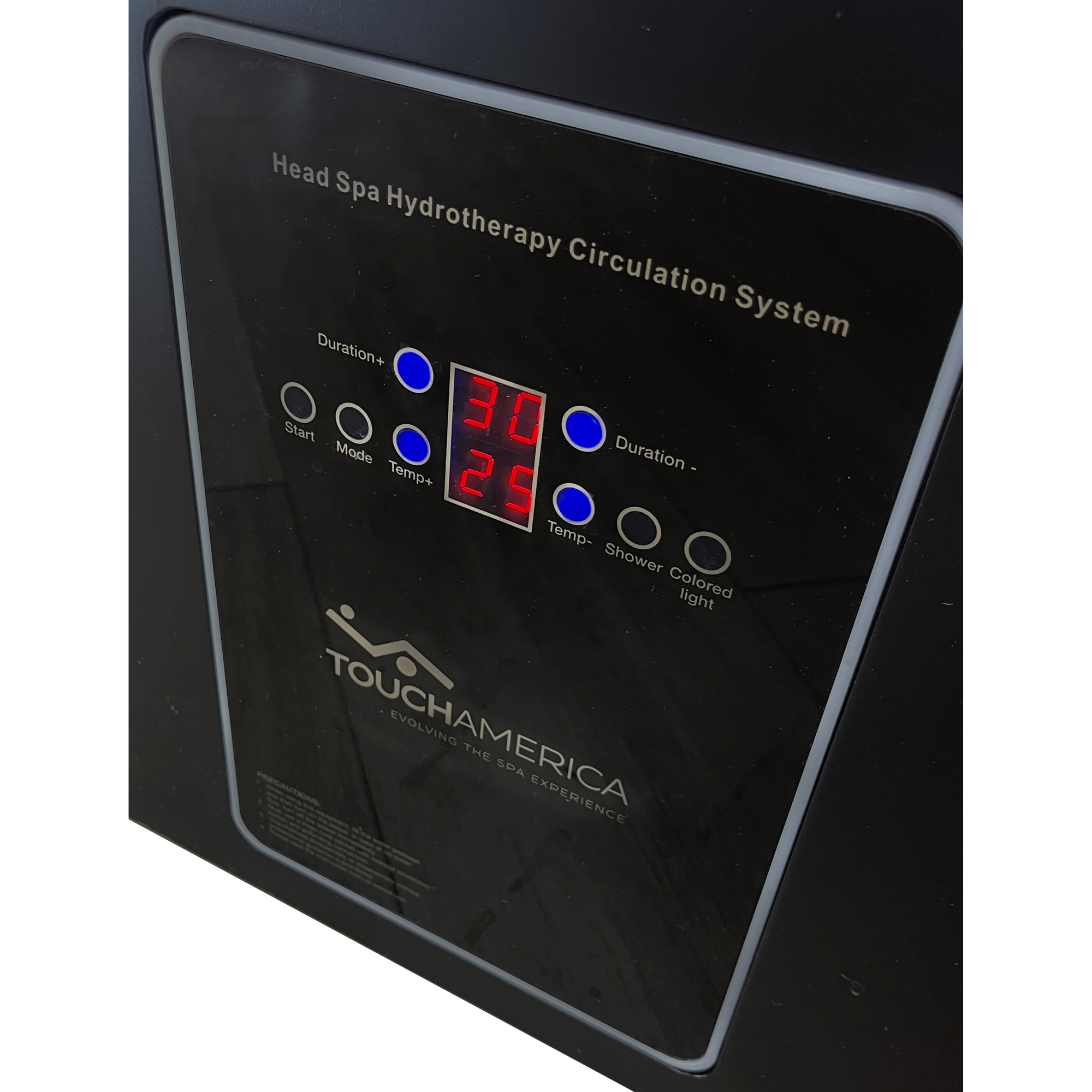 Touch America’s SereniScalp™ is the ultimate head spa table for elevated scalp care rituals. With electric height and knee adjustments, a spacious tabletop, and a heated water recirculation system, it’s designed for both comfort and performance. The Ecohead shower system softens and filters water, while hot/cold flow can be directed to both the showerhead and precision head wand. Perfect for scalp detox, hydrotherapy, and sensory relaxation.