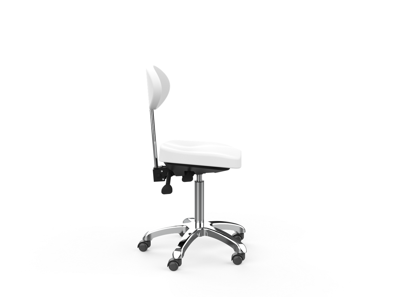 The Silverfox America 1025E, also known as the Rolling Saddle Stool with Back, is a highly ergonomic and versatile seating option tailored for beauty, spa, medical, and aesthetic professionals. Its design promotes comfort and posture support during long working sessions.