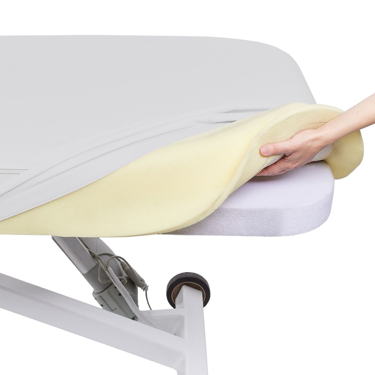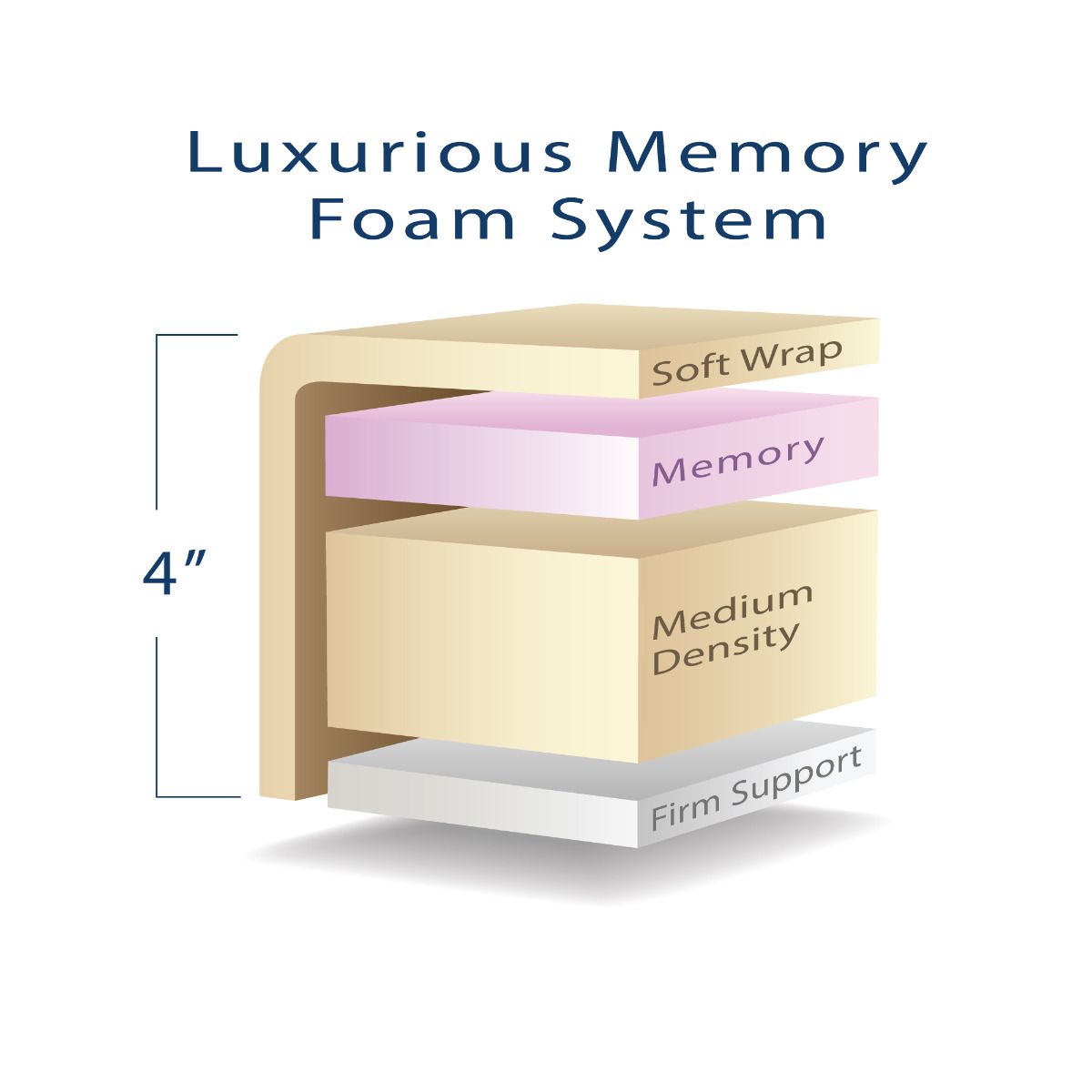 A luxurious, single piece replaceable 4” (15cm) Strata™ memory foam and upholstered cover system.