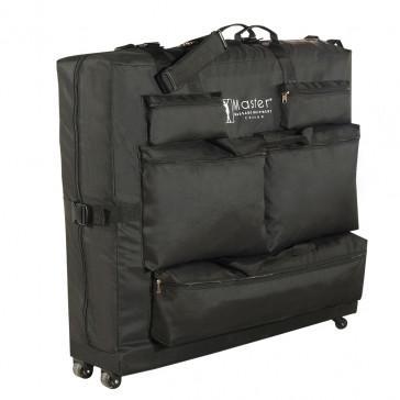 Our Universal Massage Table Wheeled Carrying Case comes with a sturdy ergonomic shoulder strap, adjustable cross-body straps, snap-lock buckles to securely fasten your folding massage bed inside, and a large outside storage compartment for your massage therapy accessories. It is an easy and convenient way to store and transport your portable massage table!