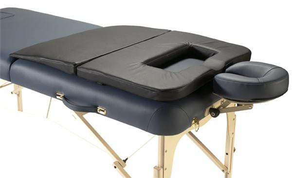 The Nirvana Mate is an ergonomic cushioning system that every therapist should have. The Breast Recess Feature provides comfort to women by taking pressure off of the breasts in prone position. In addition, the recess feature allows the spine to stay in better alignment which helps the client relax more fully.
