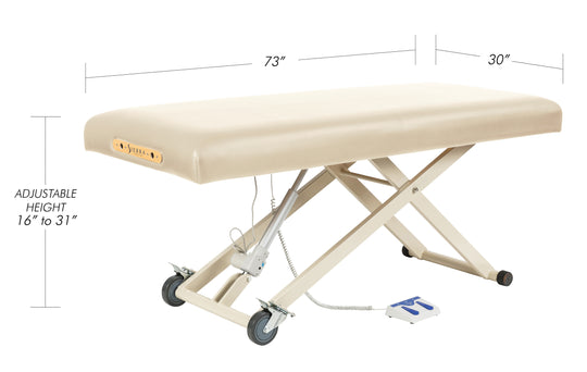 The table height is controlled electrically with a foot pedal assist, ranging from 16" to 31". Face cradle outlets at both ends of the tabletop make for a fully symmetrical design. The SC-3000 is a practical design, offering convenience and reliability.